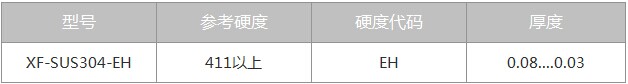 304超薄、超硬特種不銹鋼帶性能一覽表